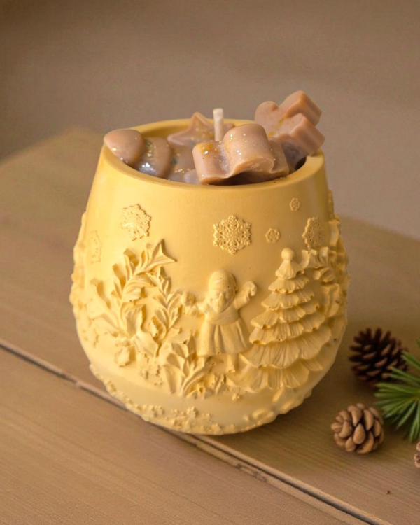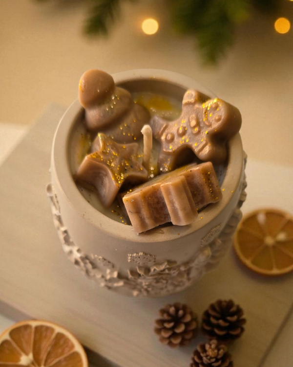 Velas aromáticas de soja en envase hecho a mano de concreto.