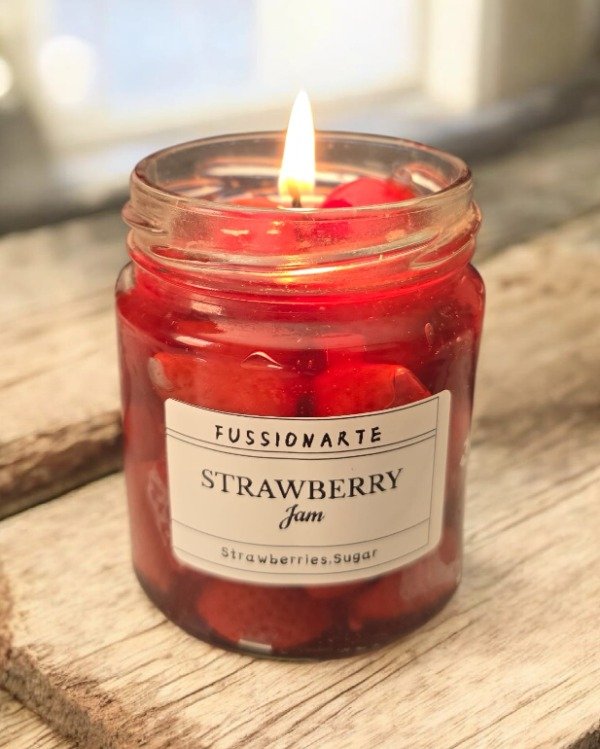 Vela tipo gel con aroma intenso a fresas frescas con frutos patagónicos.