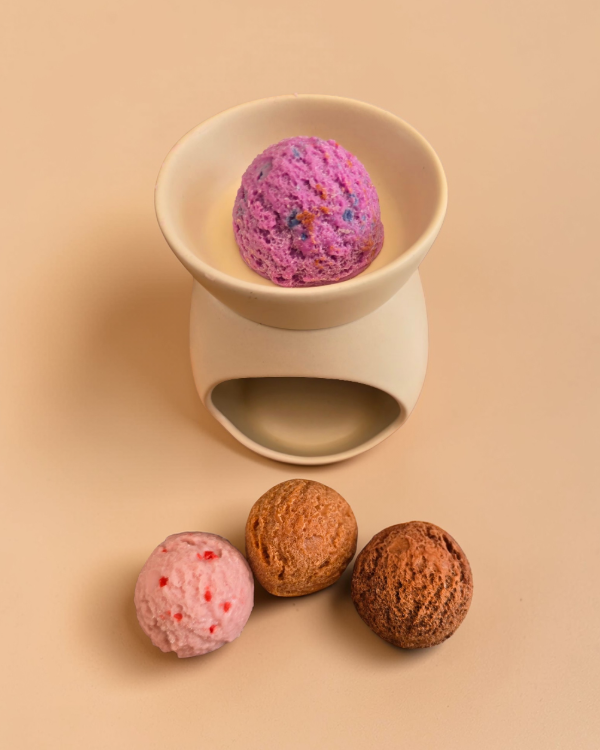 Piezas de ice cream en cera de soja aromatizadas, realizadas artesanalmente con esencias de frutilla, banana con dulce de leche, moras y fresas y chocolate, son la combinación perfecta para hacer de tu cocina una verdadero espacio único💞